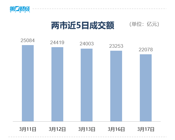 沪深两市成交额2.21万亿元,较上一个交易日缩量1175亿元。