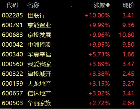 具体来看,房地产板块表现活跃。世联行、京能置业、京投发展、中洲控股涨停。