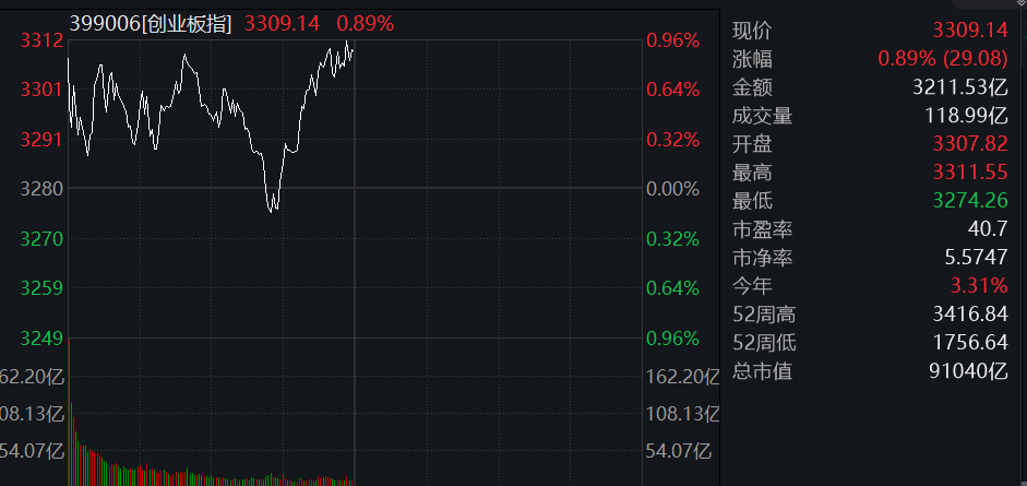 11:31 A股午盘丨创业板指半日涨0.89%