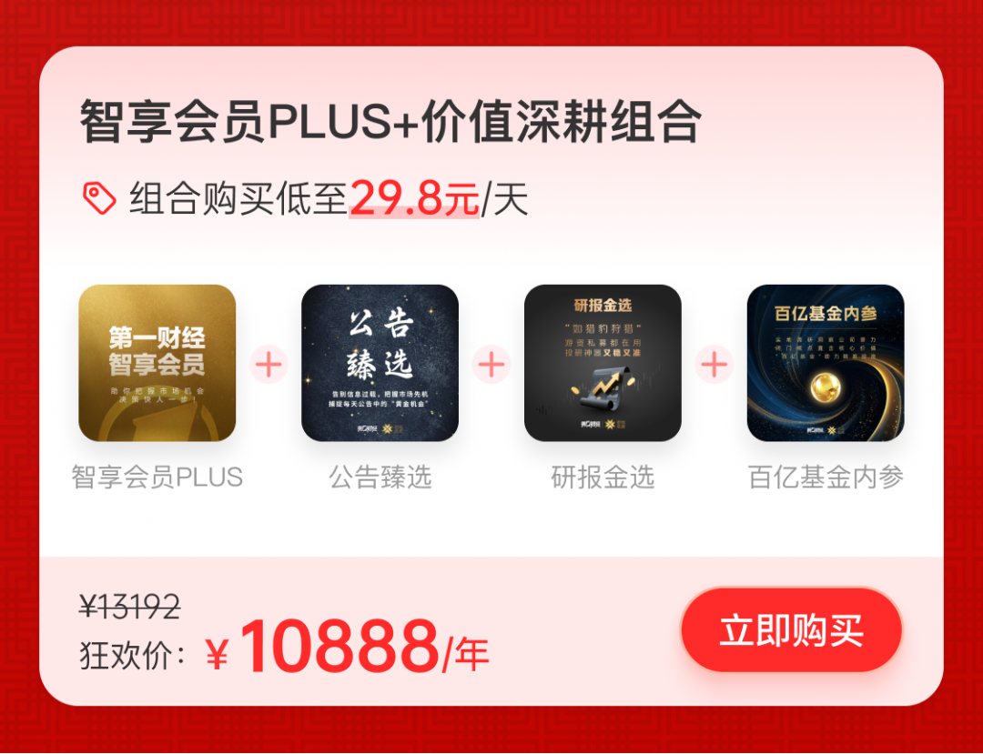 福利加码,狂欢不打烊!第一财经智享会员周年庆福利盛宴重磅开席,限时1个月抄底价狂欢,定制化投资资讯组合包精准适配不同需求,早订阅早获益,轻松拿捏2026全年投资节奏!