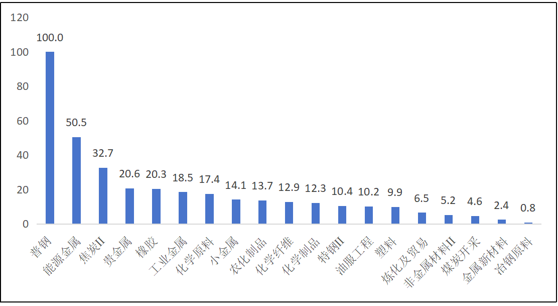 筛选结果显示,排名靠前的二级行业主要包括普钢、能源金属、焦炭、贵金属、橡胶、工业金属、化学原料、小金属、农化制品和化学纤维等。从配置视角看,这些细分方向有望同时受益于估值修复与盈利增长,具备实现戴维斯双击的潜力。