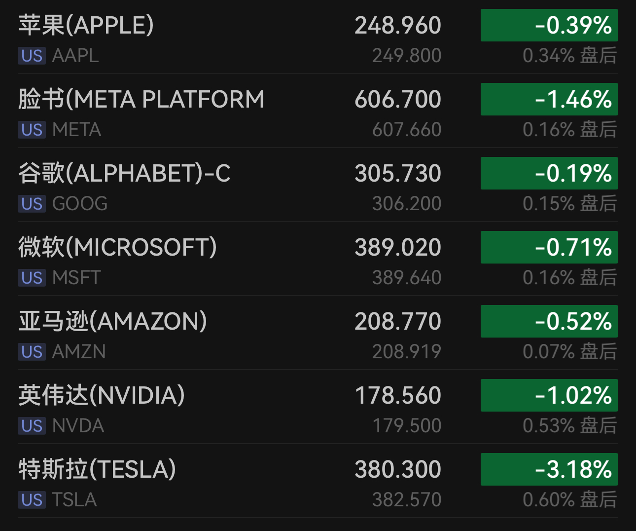 科技巨头普遍承压,英伟达跌1.02%,微软跌0.71%,苹果跌0.39%,Meta 跌1.46%,谷歌-A跌0.18%,亚马逊跌0.53%,博通涨1.24%,超威半导体涨2.91%,谷歌-C跌0.19%。特斯拉下跌3.18%。美国国家公路交通安全管理局(NHTSA)升级对约320万辆配备完全自动驾驶(FSD)系统车辆的调查,关注该系统在低能见度环境下的安全性问题,进一步压制股价表现。
