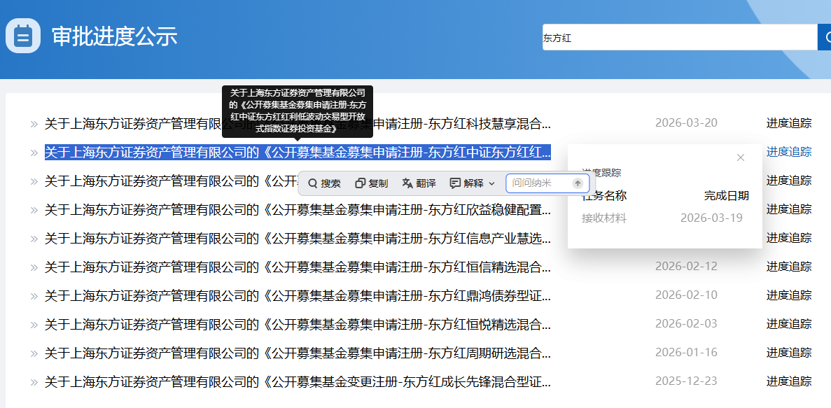 证监会官网显示,东方红资管正式上报旗下首只ETF产品,即东方红中证东方红红利低波动ETF,目前显示已于3月19日接收材料。这是继去年9月交银施罗德基金重启ETF产品线、兴证全球基金推出成立22年来首只ETF后,又一家主动权益巨头入局ETF赛道。