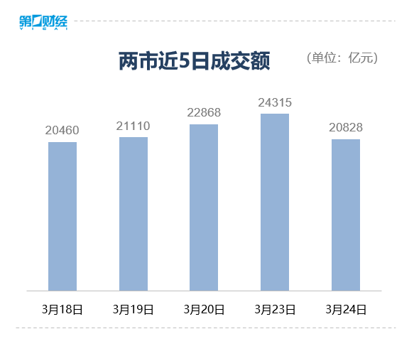 沪深两市成交额2.08万亿元,较上一个交易日缩量3487亿元。