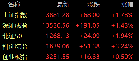 3月24日,A股四大指数集体收涨。沪指涨1.78%,深成指涨1.43%,创业板指涨0.5%,科创综指涨3.24%。