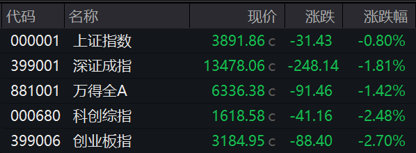 3月31日,四大指数集体收跌。沪指跌0.8%,深成指跌1.81%,创业板指跌2.7%,科创综指跌2.48%。