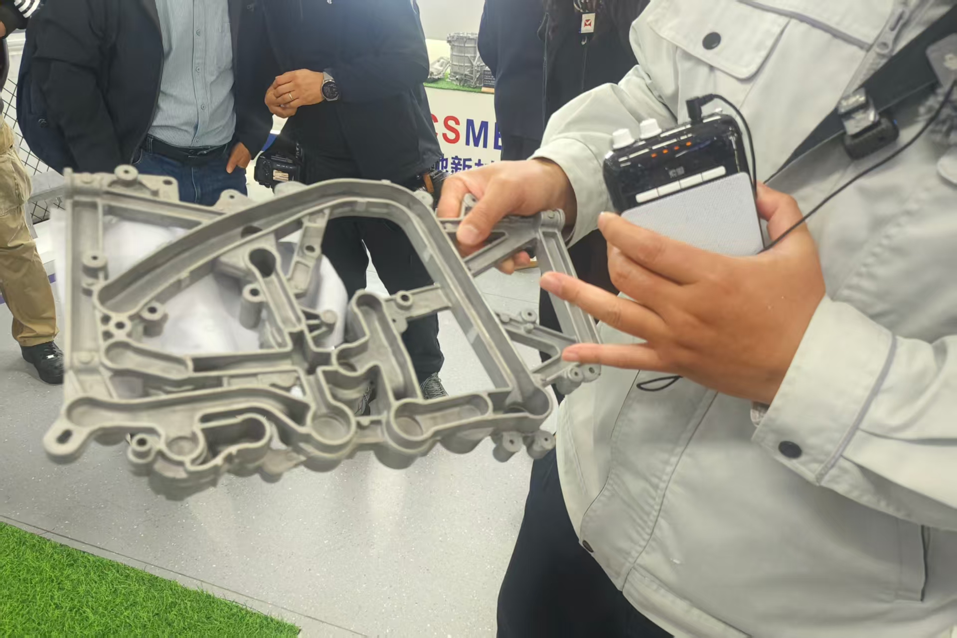 图为“玄武合金”材料下的一体化压铸部件 邹臻杰/摄