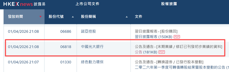 港交所信息显示,4月1日晚间21:08、21:21,光大银行先后发布两份公告,对在港交所披露的2025年年报(H股)中的分支机构资产规模数据进行了修订,同时挂出一份新的A股年报。至此,该行在上交所和港交所最新挂出的4份年报数据实现一致。