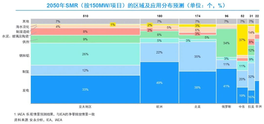 到2050年,预计约50%的已建成SMR将位于亚太地区,而欧洲和北美的这一比例分别为17%和16%。