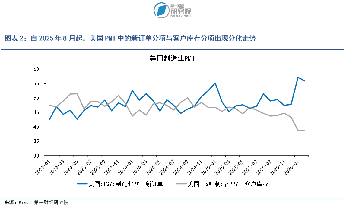 美国作为全球最大的消费市场,其经济数据具有一定代表性。今年1月,美国制造业PMI中的客户库存分项下降至38.7,为2022年6月以来的最低值;同时,美国制造业PMI中的新订单分项上升至57.1,为2022年3月以来的最高值。新订单所代表的需求强劲与客户库存所代表的供给偏软意味着未来的全球生产将被补库存需求所支撑。除美国外,欧洲经济表现也在持续回暖中,由标普全球所编制的欧元区PMI指数在今年2月回升至50.8,是自2025年8月以后首次回到荣枯线以上,其中德国PMI指数回升至50.9,为44个月以来最高。