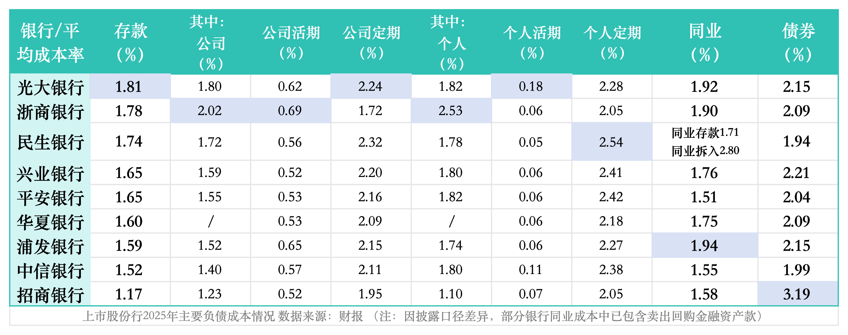 不过,一般存款成本低于同业及发债成本仍是常态,关键要看高成本定期存款和低成本活期存款的比重。