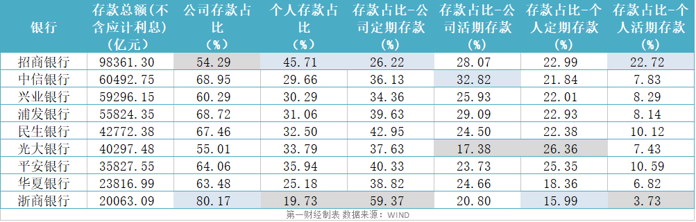 活期存款、定期存款占比差异大