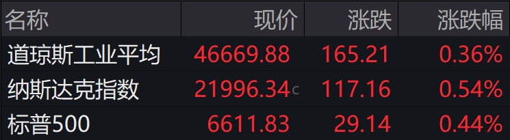 ►►当地时间周一,美股三大指数小幅走高,截至收盘,道指涨0.36%,纳指涨0.54%,标普500指数涨0.44%。