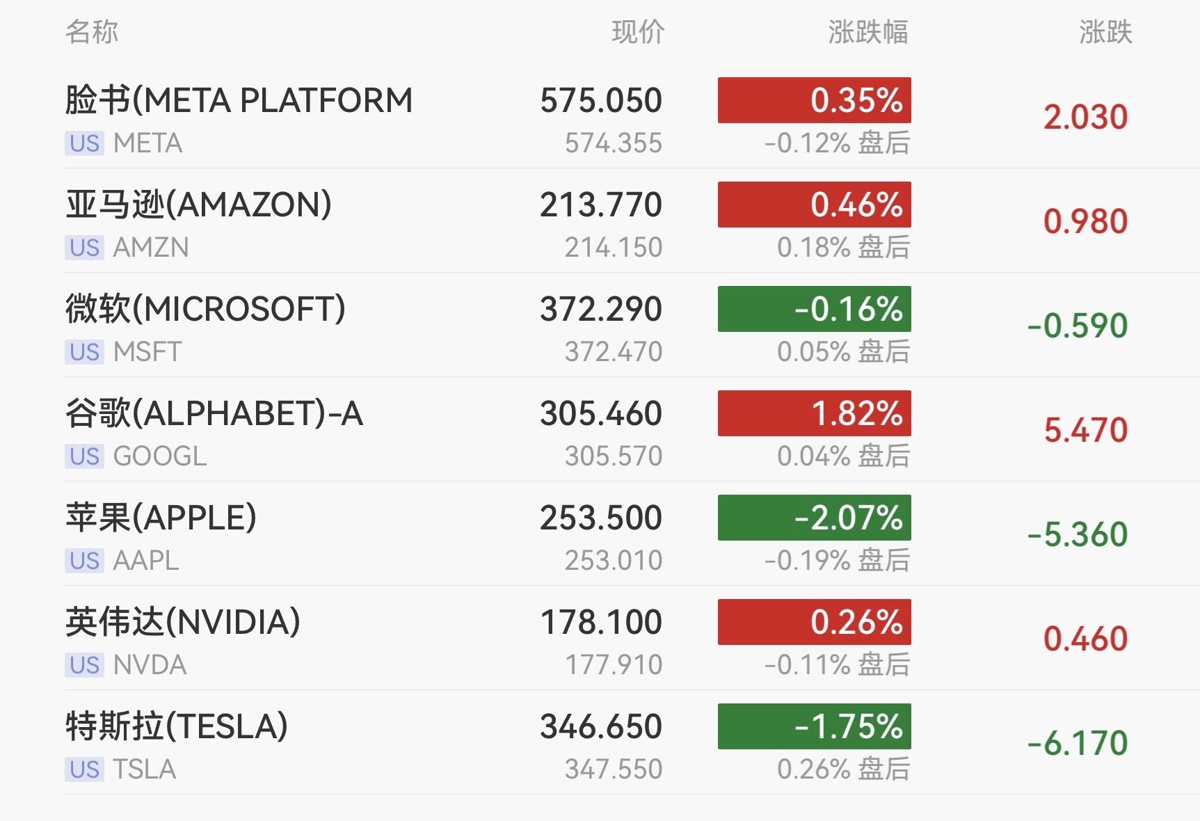 周二收盘,龙头科技股涨跌互现。谷歌母公司Alphabet涨1.82%,亚马逊涨0.46%,Meta涨0.35%,英伟达涨0.26%。
