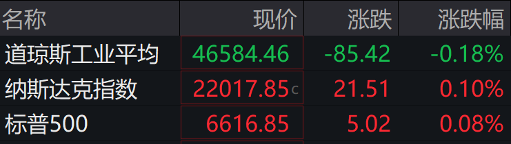 ►►当地时间周二,美股涨跌互现,主要股指尾盘跳涨。截至收盘,道指跌0.18%,纳指涨0.10%,标普500指数涨0.08%。