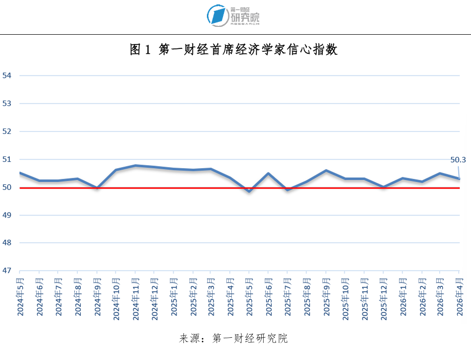2026年4月,第一财经研究院发布的“第一财经首席经济学家信心指数”为50.3,连续9个月高于50荣枯线。经济学家们认为,在外部不确定性持续扰动的情况下,我国经济一季度开局良好,GDP同比增速将高于去年第四季度4.5%的公布值,预测均值为4.8%。他们对2026年度GDP同比增速的预测均值为4.7%。