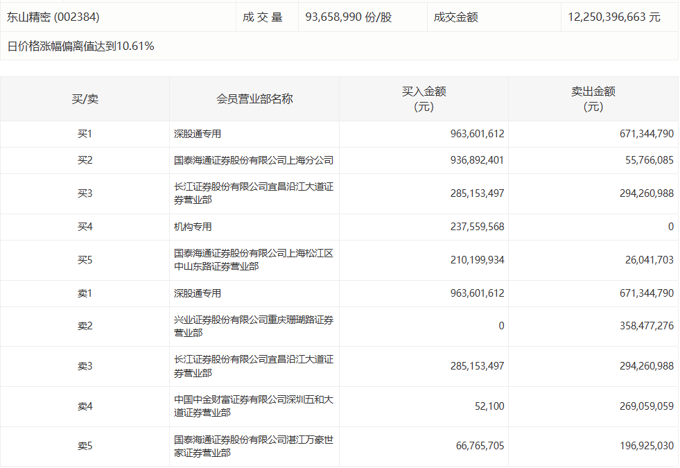 东山精密今日涨停,3家机构专用席位净买入5.68亿元