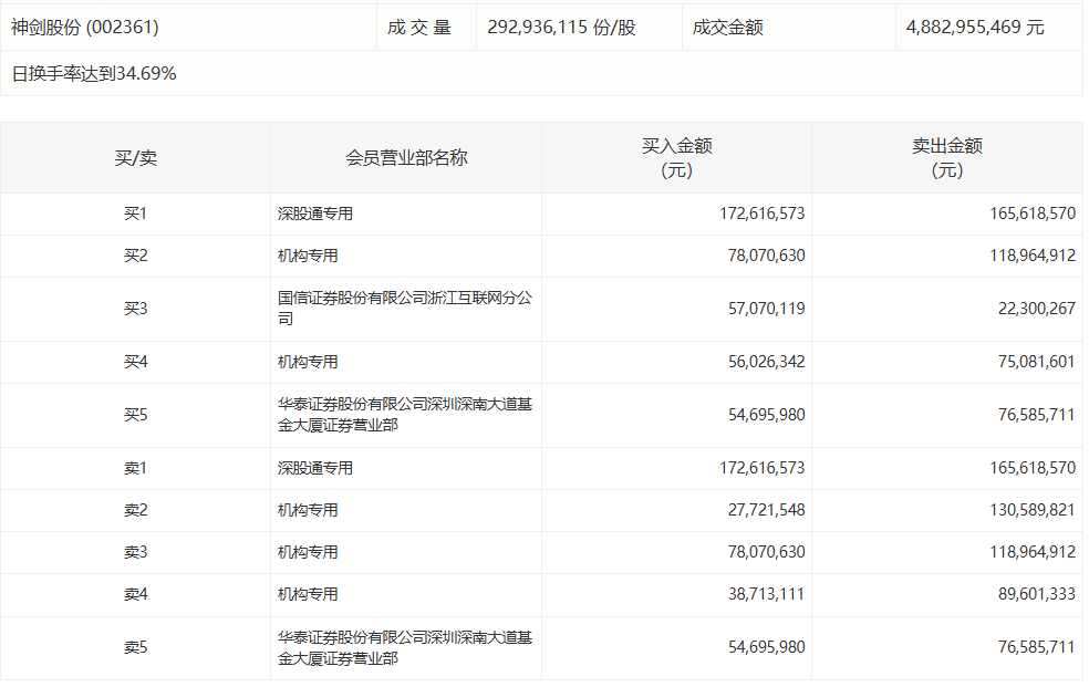神剑股份今日涨停,3家机构专用席位净买入1.35亿元