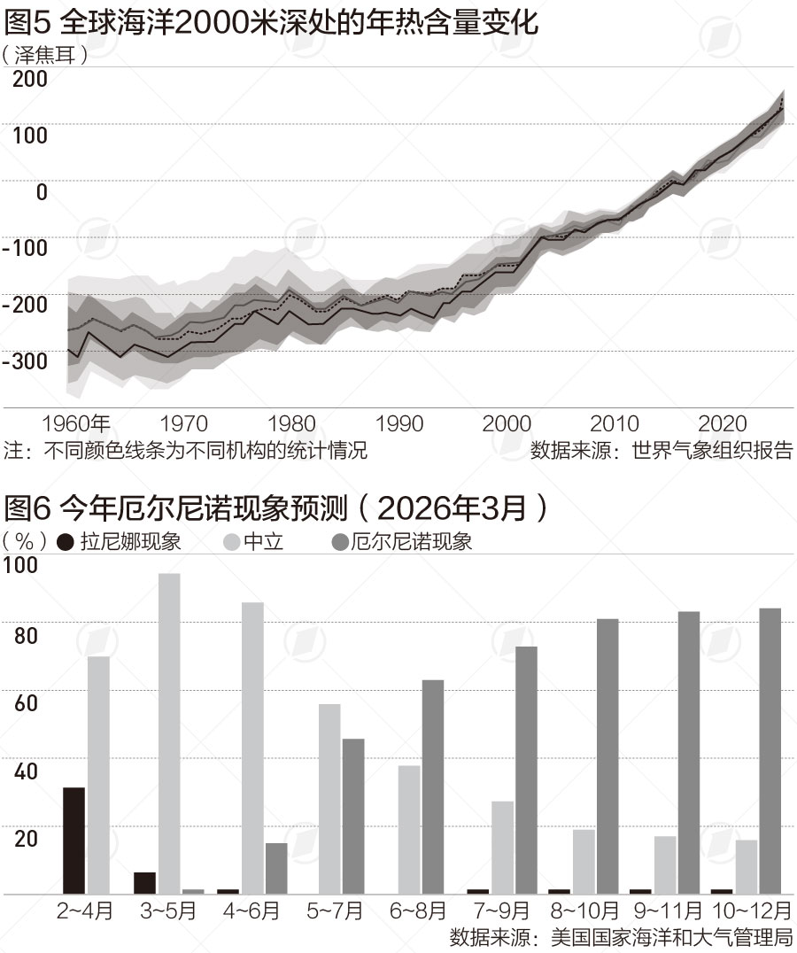 海洋“高烧不退”,正是近年来全球极端天气越发频繁、越发猛烈的“核心能量源”。进入2026年,根据世界气象组织的月度通报,前三个月已见证南半球的酷热与火灾、北半球创纪录的严寒与降雪,此外还有全球多地的破坏性暴雨与洪水。