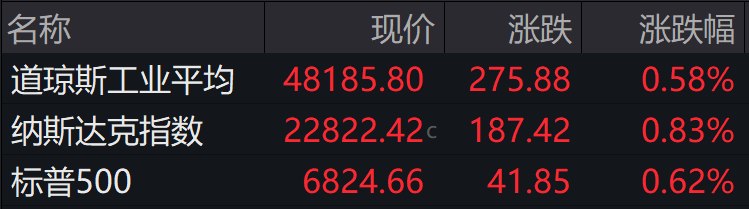 大型科技股普涨,亚马逊涨超5%,奈飞、Meta涨超2%,苹果、谷歌、特斯拉微涨,微软小幅下跌。