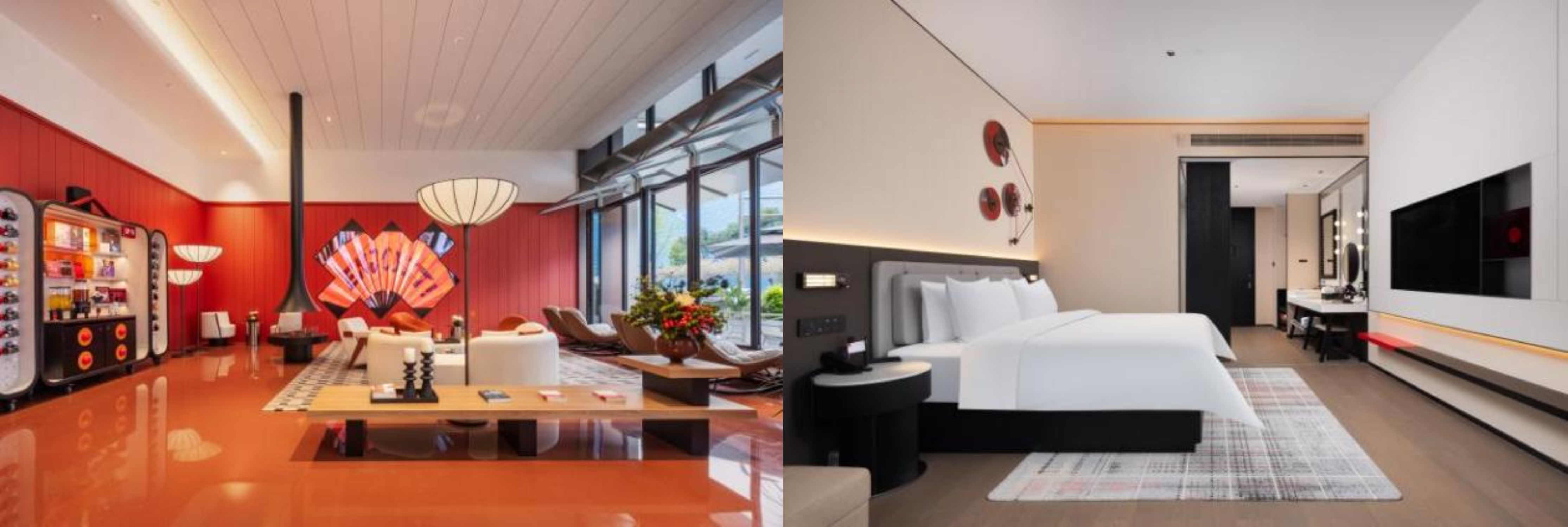 成都339天府熊猫塔丽芮酒店作为丽芮品牌在成都的首店,亦是其在华西打造的首家直营店,致力于成为年轻潮流客群探索成都的时尚据点,树立区域高端生活方式酒店的新标杆。该店拥有171间客房,均配备戴森吹风机、美国MALIN+GOETZ高端洗护用品、舒达床品及全屋智能客控等高品质设施;整体设计上延续丽芮品牌特有的“红调”,并大胆融合成都本地“茶馆文化”“太阳神鸟”等元素,以“偷得浮生半日闲”为主题,打造了一个充满设计感与社交活力的潮流空间。
