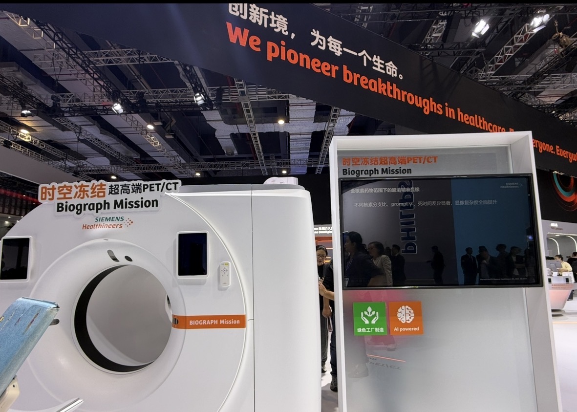 西门子医疗在CMEF展台上的一位产品经理向第一财经记者解释称,传统的PET/CT使用的诊断核素一般需要用回旋加速器来制备的,回旋加速器的投入需要成本,制备技术门槛也比较高。相比之下,SPECT/CT设备常用的诊断核素,比如锝-99、碘-131这些常用诊断核素的获取比PET/CT使用的核素更容易,但是另一些配合SPECT/CT使用的治疗核素,比如镥-177、锕-225,这些是需要通过核反应堆或加速器来生产制备的,获取也是相当困难。