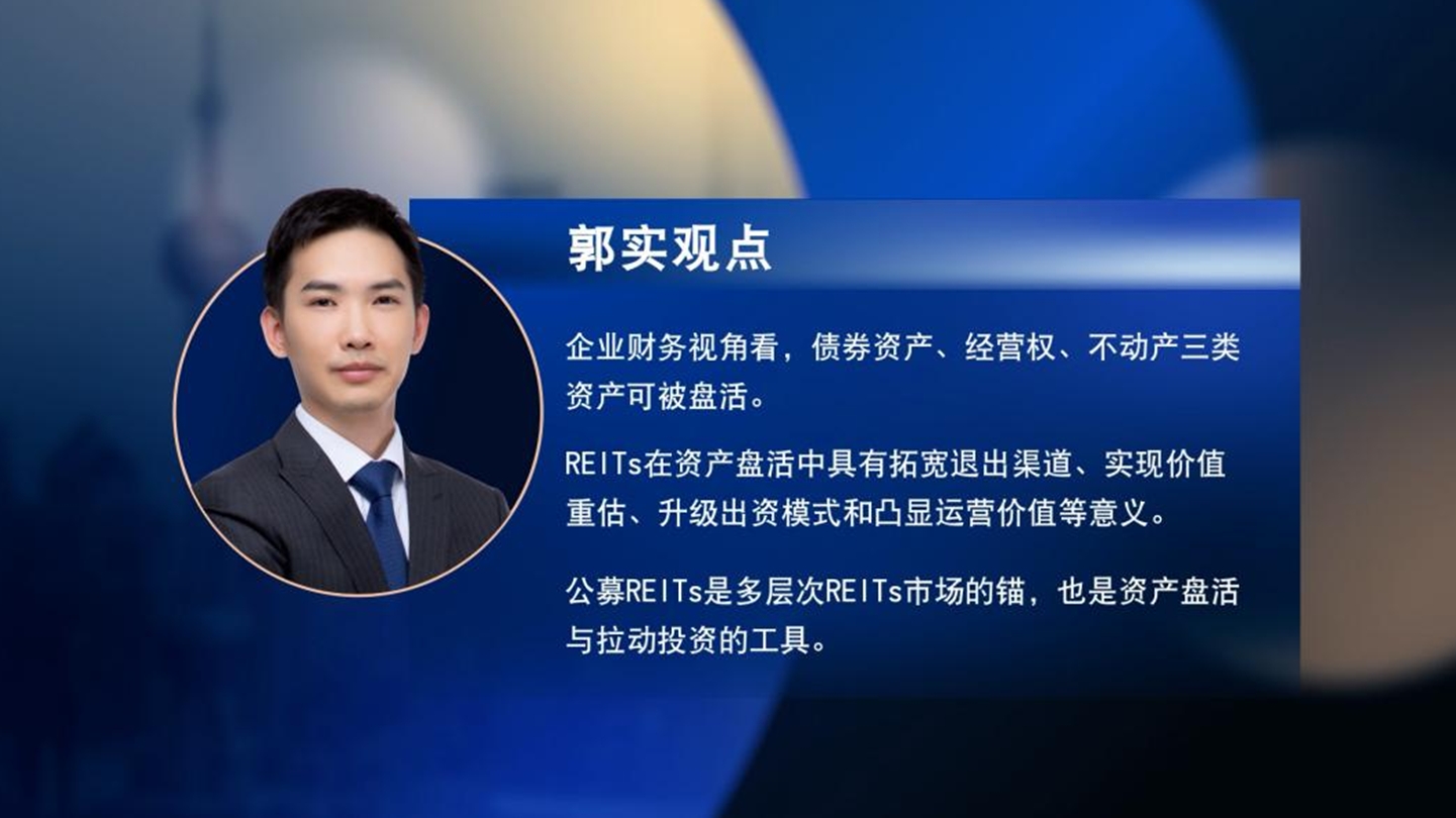 国泰海通证券股份有限公司债务融资部联席总经理郭实结合具体案例的分析,提出,REITs在资产盘活中具有拓宽退出渠道、实现价值重估、升级出资模式、凸显运营价值等意义。
