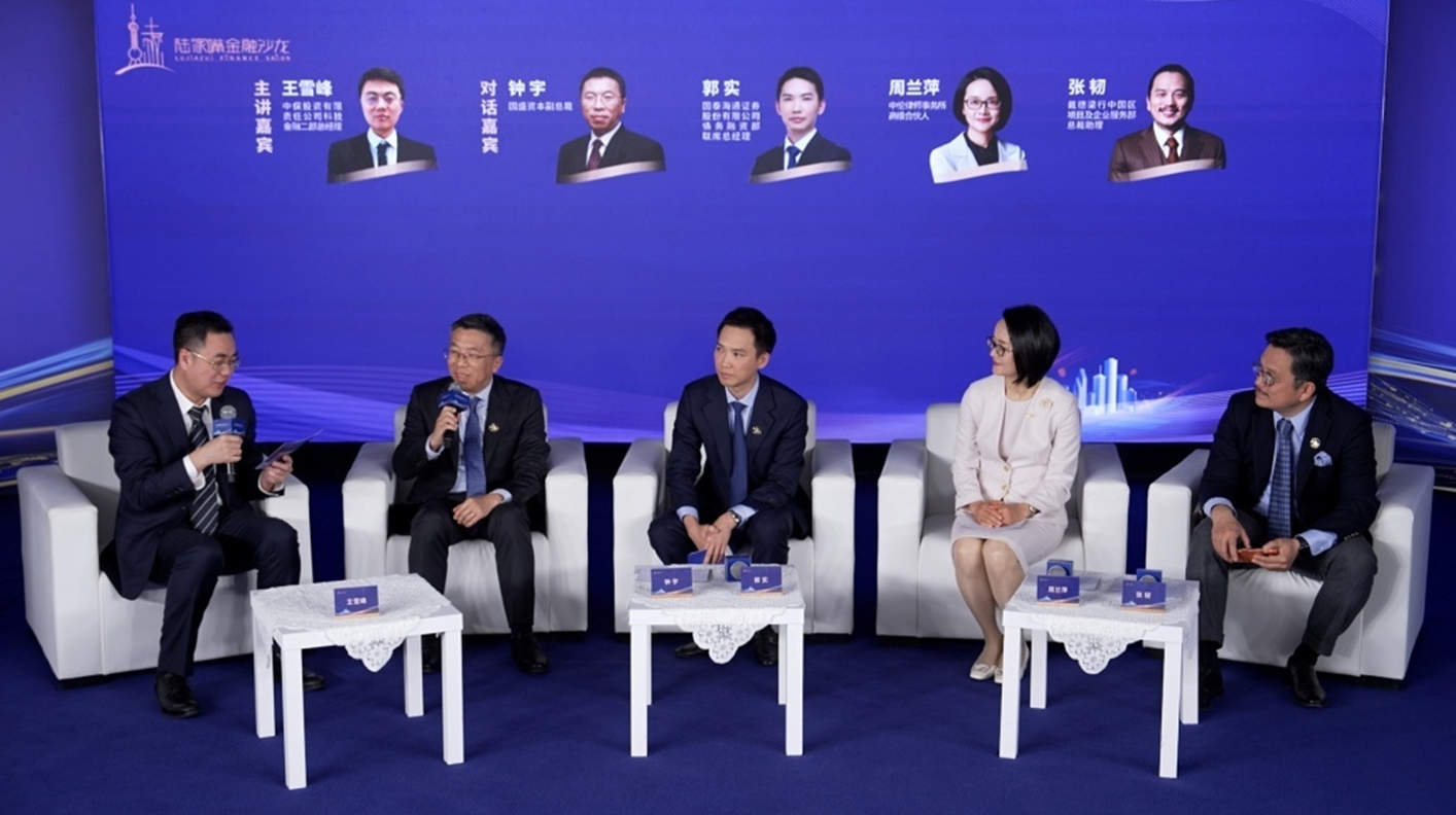 本期陆家嘴金融沙龙的圆桌讨论环节由中保投资有限责任公司科技金融二部总经理王雪峰主持。该环节中,众嘉宾围绕“区属国企创新实践、长期资本参与机遇、REITs制度优化、数字化技术赋能”等核心话题展开全方位探讨。