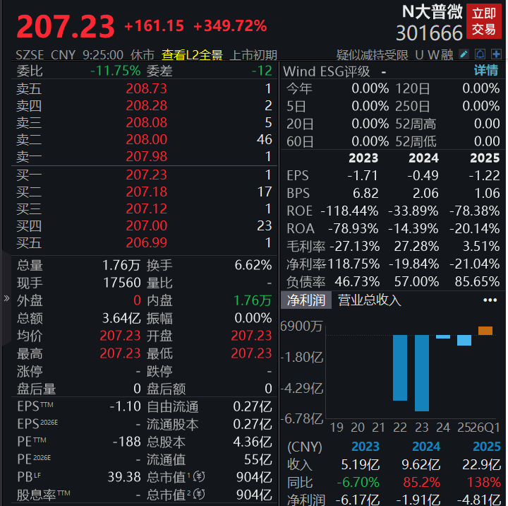 个股方面,N大普微上市首日高开近350%,公司为首单“破冰”创业板未盈利企业上市。