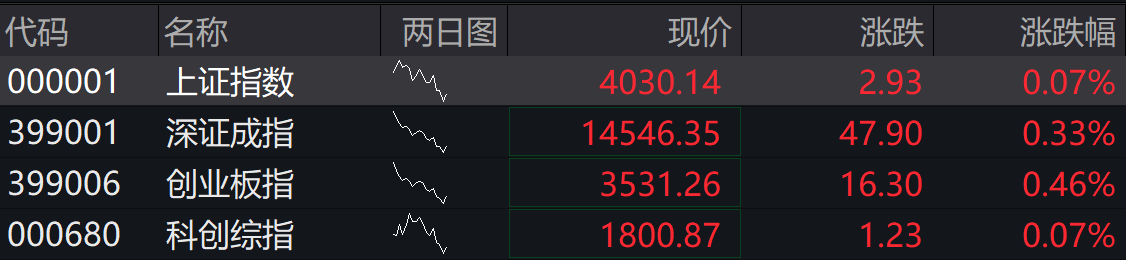 4月16日,A股四大指数集体高开,沪指高开0.07%,深成指高开0.33%,创业板指高开0.46%,科创综指涨0.07%。