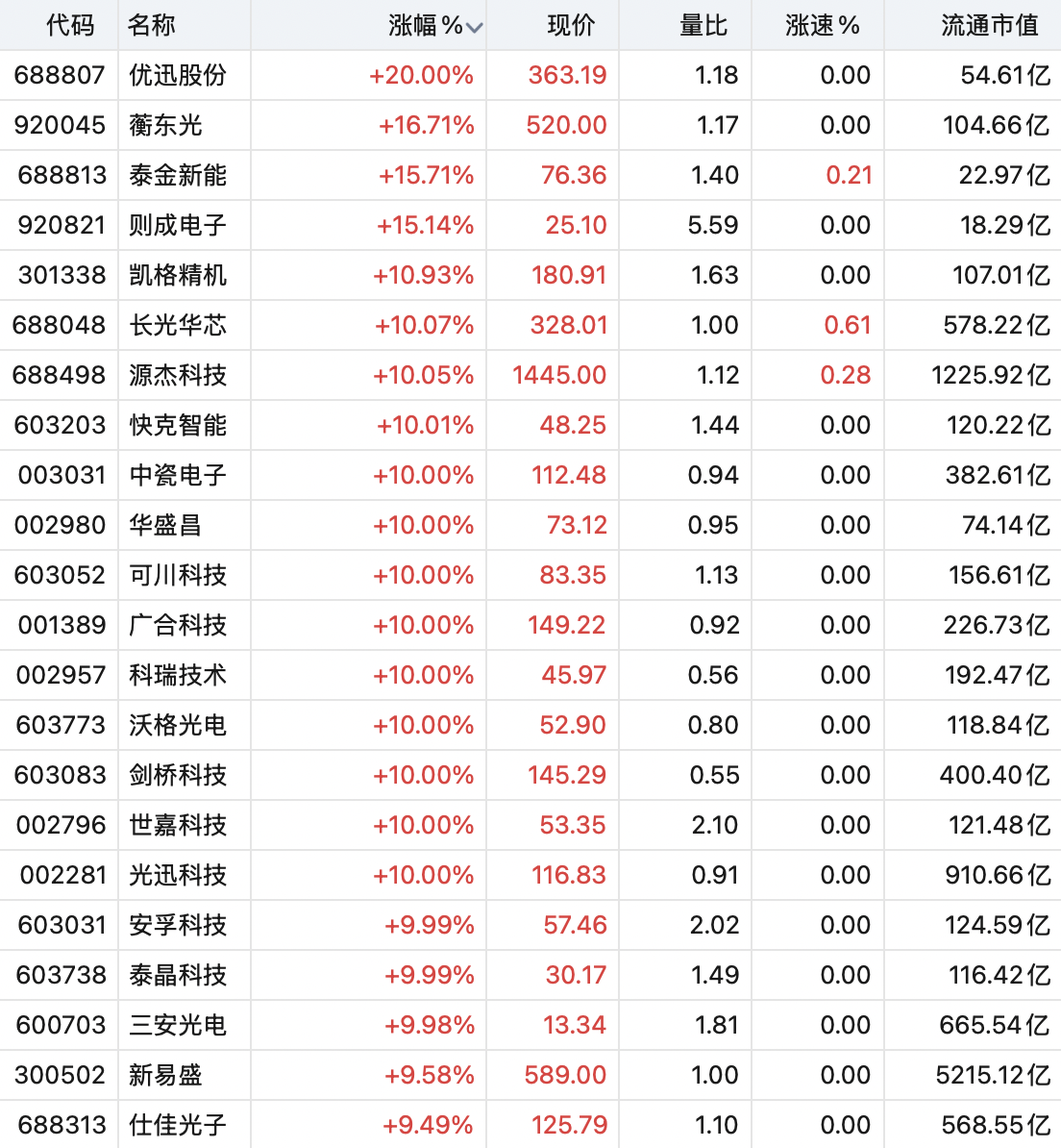 具体来看,CPO概念股连续大涨,优迅股份20%涨停,此外,剑桥科技、广合科技、光讯科技、世嘉科技等10余股涨停,中际旭创再创新高。