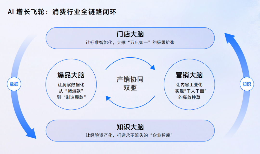 先进的消费企业,已经开始主动将 AI 接入实际业务场景,在知识、爆品、营销、门店四大阵地,进化出了“四个大脑”。