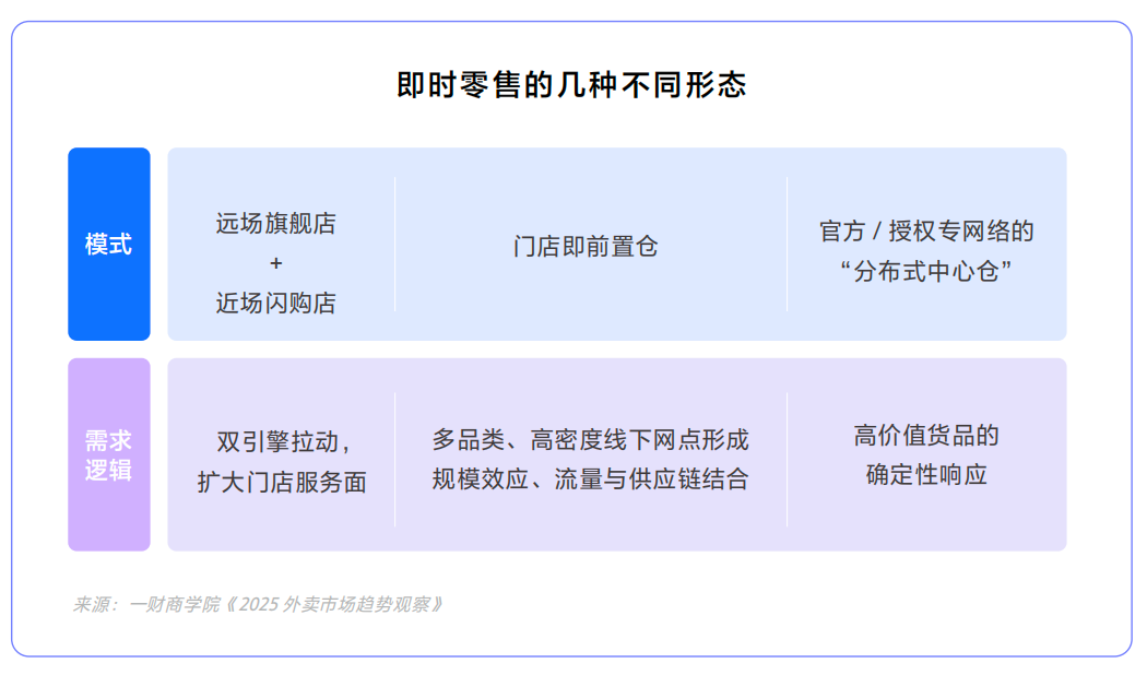 2025 年中,“外卖大战”加速了“近场零售”与“远场电商”的融合:远场电商提供“多好省”的丰富选择,即时零售/外卖平台则提供“极致快”的履约体验,两者互补,共同提升用户转化与复购。不光是生鲜餐饮,美妆、数码乃至服饰,都不得不将战线推进到消费者的“附近”。这已不仅是渠道的变更,更是对全盘库存调度与极致履约能力的极限施压。