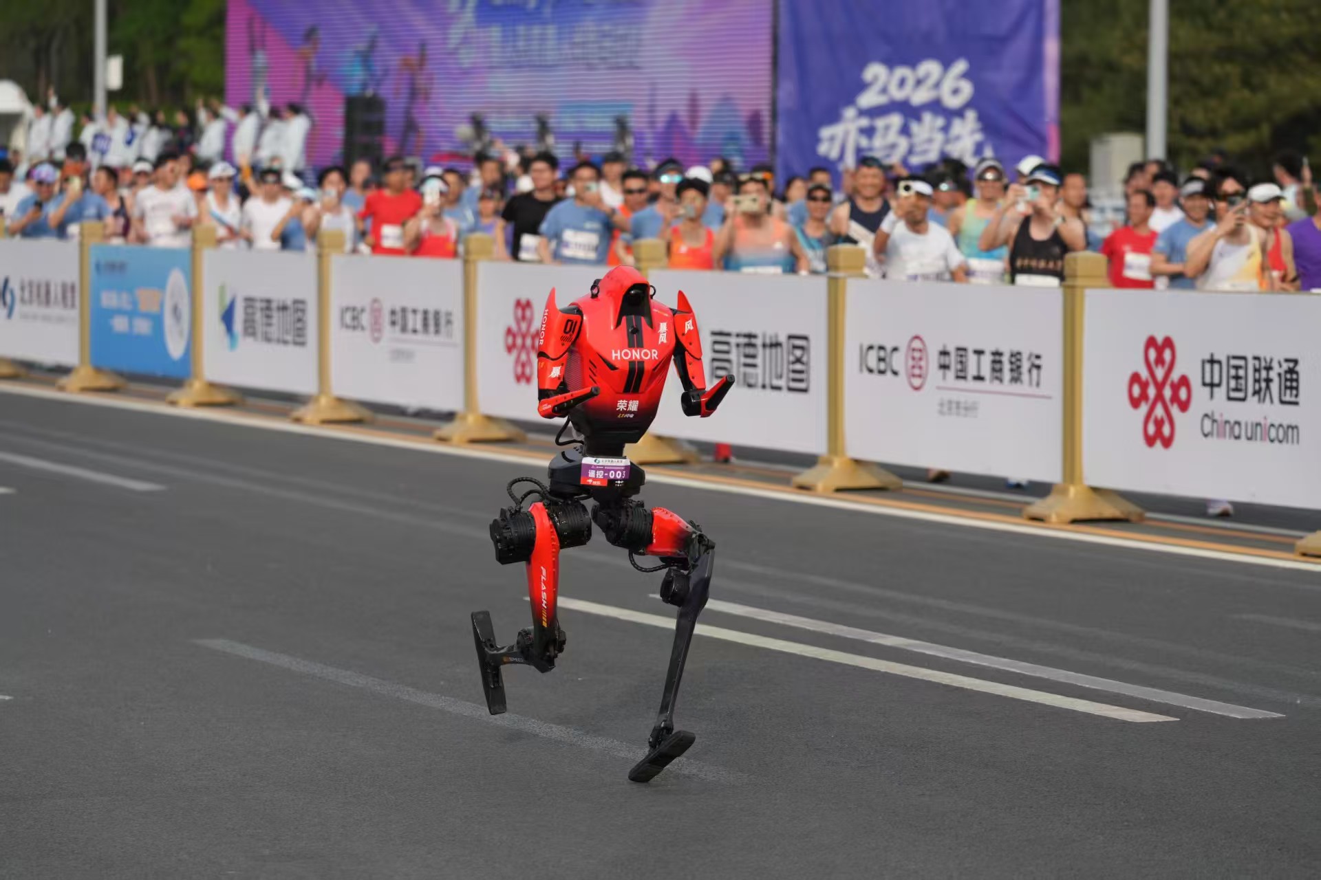 4月19日上午,北京亦庄人形机器人半程马拉松赛道终点附近,围观人群的目光紧紧跟随着一道红色的身影。最终,由荣耀“闪电”机器人组成的齐天大圣队斩获赛事冠军。这一成绩也超越了乌干达名将基普利莫在今年3月创造的57分20秒人类纪录。当天,荣耀旗下不同技术方案组成的多支机器人战队包揽了本次比赛的前三名。