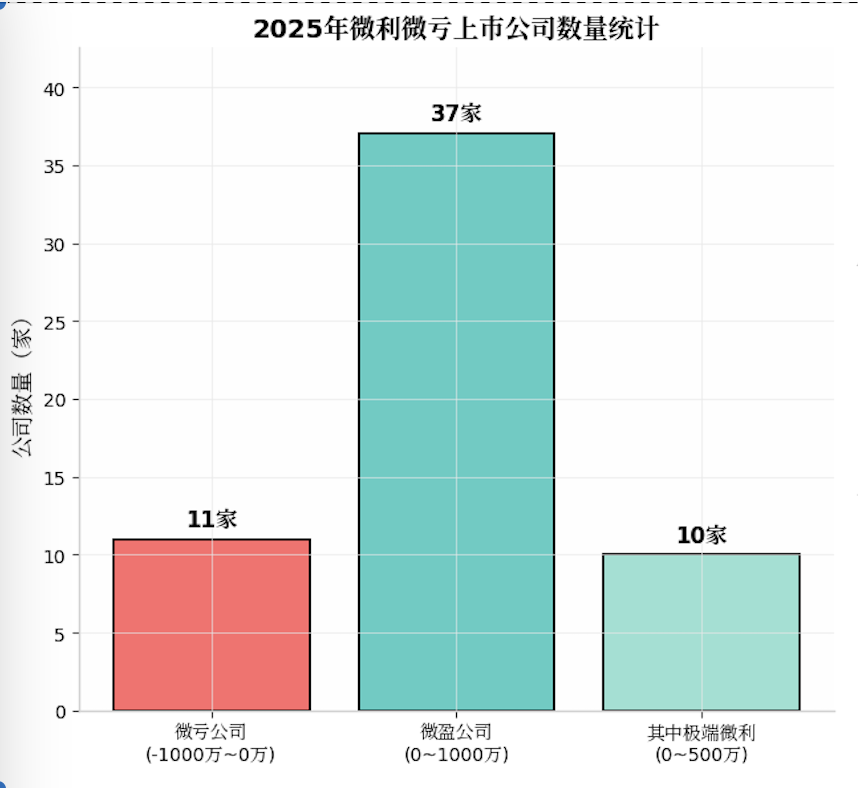 进入上述统计的还有11家2025年微亏的上市公司,亏损额从-208万元到-923万元。