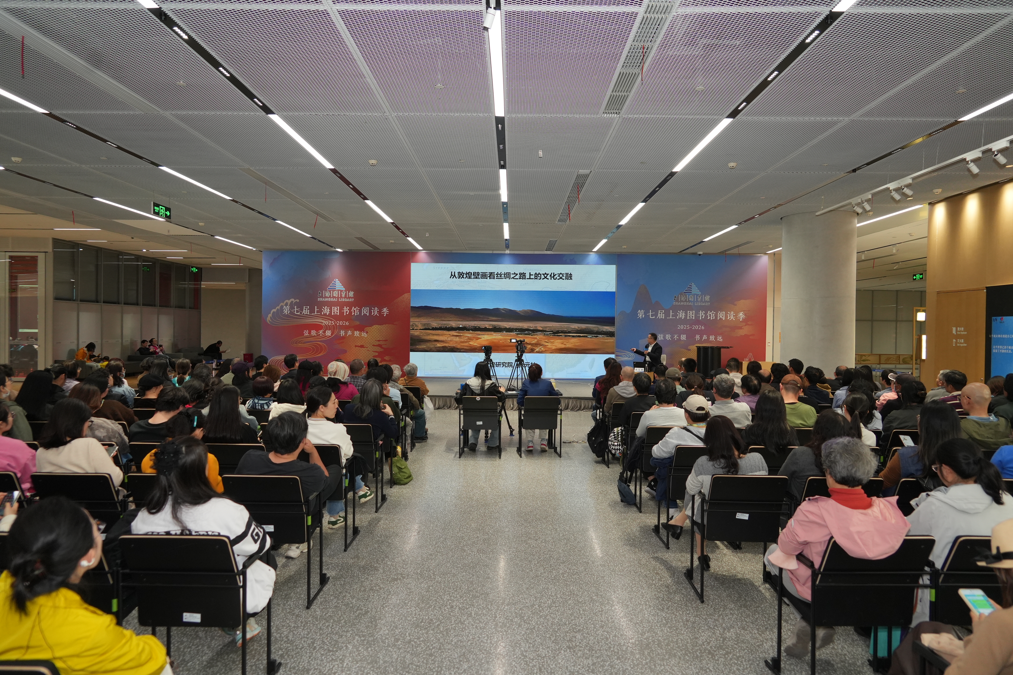在今年四月的交流中,张元林教授很自豪地强调:尽管敦煌莫高窟是不可移动的珍贵历史文化遗产,但敦煌的巨大文化与艺术影响,始终在全世界传播着。他很注重敦煌学在国际大都市上海的传播,多次来沪参加敦煌文博的主题活动并发表演讲。最近就是四月八日在地处浦东的上海图书馆东馆,即主办方邀请到了敦煌研究院副院长、敦煌学权威张元林教授主讲首场报告。这是上图精心涉及并开设的“心迹·敦煌系列讲座”四场知识盛宴中的第一声,而在学术报告的同时,张元林教授教授和上海的文博数字化保护工作者共同对话。聆听者们均有厚实收获,总体上认为敦煌是无数无名者以心血镌刻的精神故土,素有华戎所交一都会的美誉。触摸于敦煌的雕塑与壁画间,能看到多种文明要素在此和谐共存,也能感受到那个时代的世俗烟火气;商旅往来、乐舞飞扬,东西方的面孔与故事都在斑驳的丹青中留下了痕迹。