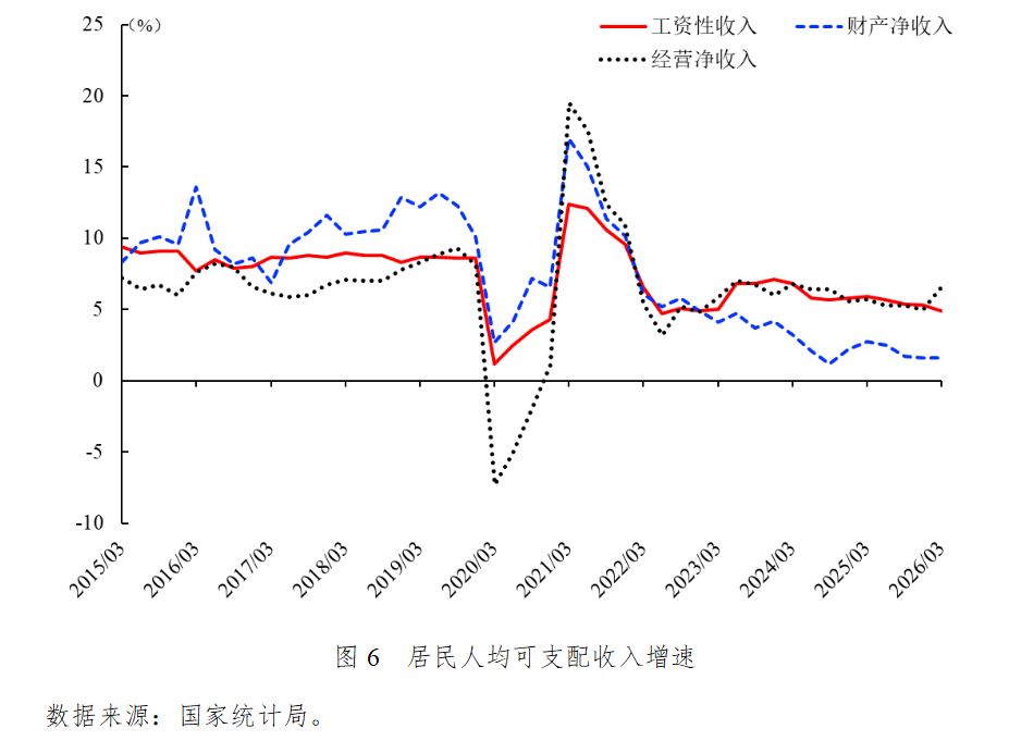 负资产困局拖累消费贷款增速。剔除房贷负增长的拖累后,一季度普通消费贷增速降至-1.2%,首次出现负增长,主要有三方面原因:其一,房价整体呈现下跌态势,房产价值低于按揭贷款余额形成负资产,居民为保住房产而被迫去杠杆,造成消费需求收缩。其二,一季度居民人均可支配收入同比名义增长4.9%,扣除价格因素后实际增长4.0%,自2023年二季度以来首次低于GDP增速。其中,工资性收入、财产净收入增速逐季回落,收入预期转弱制约居民消费潜力。其三,尽管个人消费贷款享受1%的财政贴息,但受净息差收窄、整治低价内卷影响,消费贷产品年化利率普遍上调至3%以上,相当于银行部分挤占了补贴给居民的政策红利,消费信贷成本降幅不及预期。