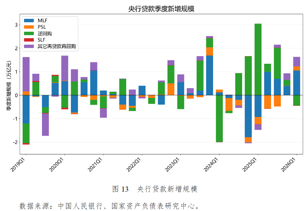 从2024年二季度到2025年三季度,长达一年半的时间里,PSL几乎全是净偿还,说明前期支持棚改或三大工程的资金在不断到期退出。但2026年一季度,PSL出现了1744亿元的净投放,主要原因是1月央行通过PSL向政策性银行提供低成本的定向长期资金,通常被直接注入三大工程或保交楼项目。其他再贷款再回购的净投放量也高于过去几个季度,说明央行更加依赖结构性货币政策工具进行精准滴灌。