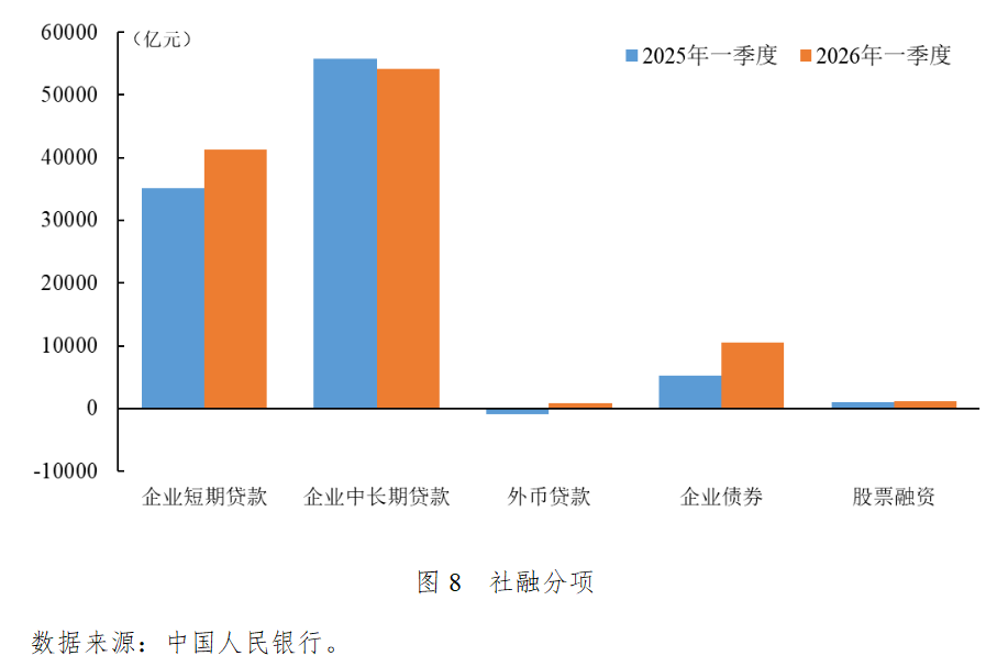 一季度新增外币贷款852亿元,同比多增1820亿元,主要有两方面原因。一是进口增速回升带动外币贷款需求。外币贷款主要用于支付进口货款,一季度我国进口同比增长22.7%,进口规模创历史同期新高。二是人民币汇率升值降低外币贷款成本。人民币汇率自2025年末突破7.0关口后加速上行,2026年2月末在岸、离岸人民币均升破6.85关口,创2023年4月以来新高。经济基本面韧性和A股价值重估是支撑人民币持续走强的重要原因,美元信用受损带动包括人民币在内的非美货币普遍出现被动升值。此外,中国企业海外盈利能力提高,结汇需求集中释放进一步助推人民币涨势。