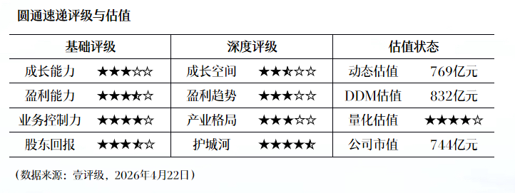 “壹评级”指出,圆通速递作为快递板块优质标的,行业“反内卷”驱动公司盈利能力提升。结合壹评级DDM估值和动态估值,目前公司估值仍具性价比。