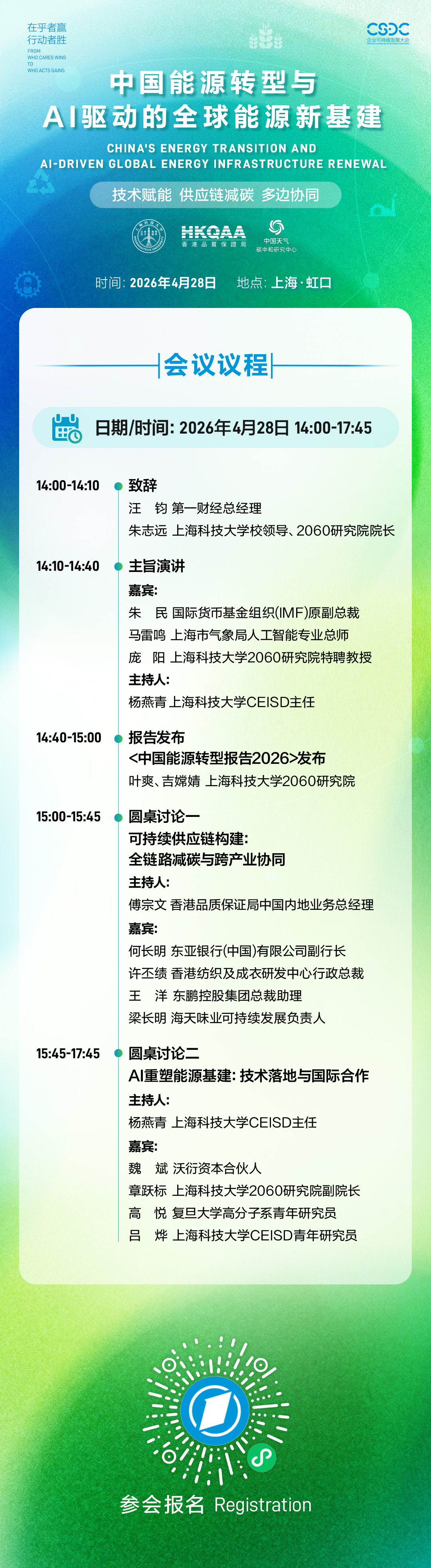 在此背景下,大会组委会×上海科技大学×香港品质保证局×中国天气碳中和研究中心联合发起,聚焦中国能源转型、AI驱动能源新基建、可持续供应链构建三大核心方向,汇聚政府、学界、产业界与投资机构力量,共同探讨能源转型、技术创新、供应链减碳、国际合作路径,推动能源产业从 “绿色转型”迈向“智能可持续”。