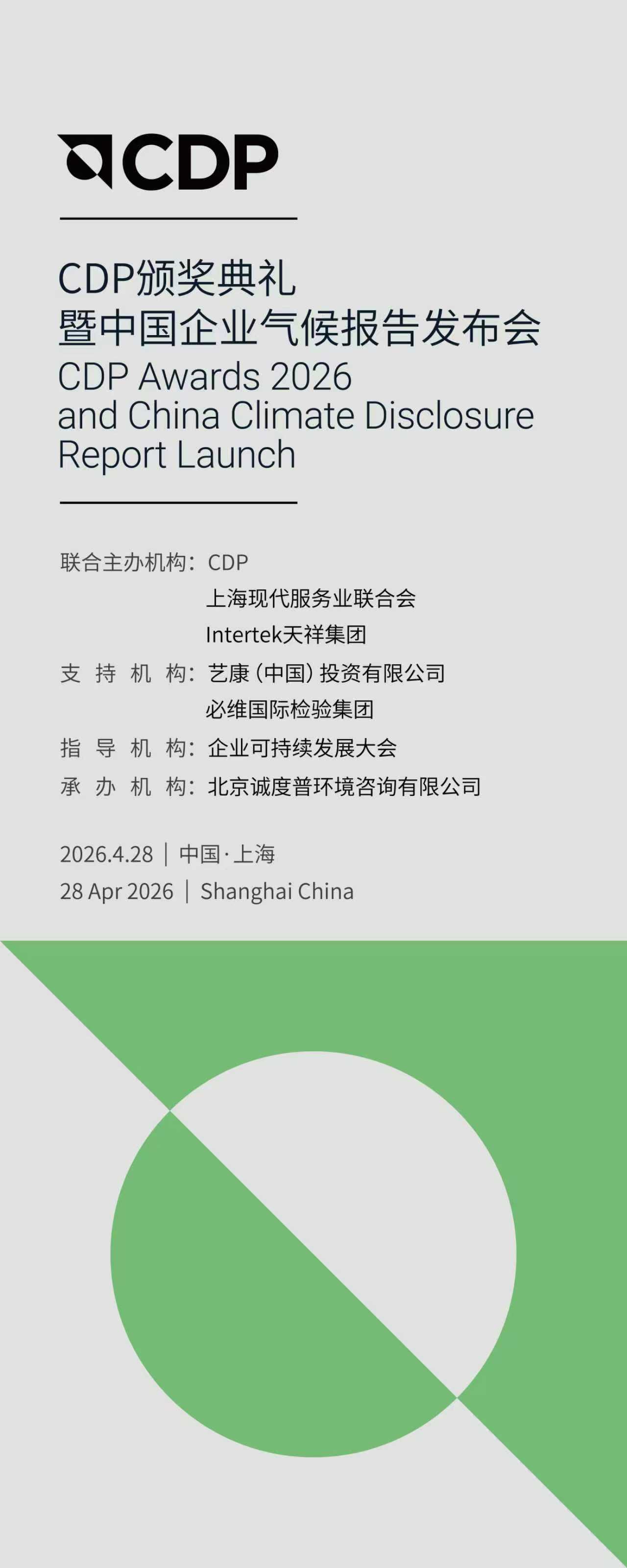 CDP颁奖典礼暨中国企业气候报告发布会将是“2026企业可持续发展大会”框架下的重要活动,聚焦于企业气候行动与信息披露,旨在展现中国企业在应对气候变化方面的透明度与领导力。活动将汇聚政府、国际组织、研究机构及领先企业的代表,共同探讨全球气候治理下的中国方案,并发布权威报告、表彰行业典范。