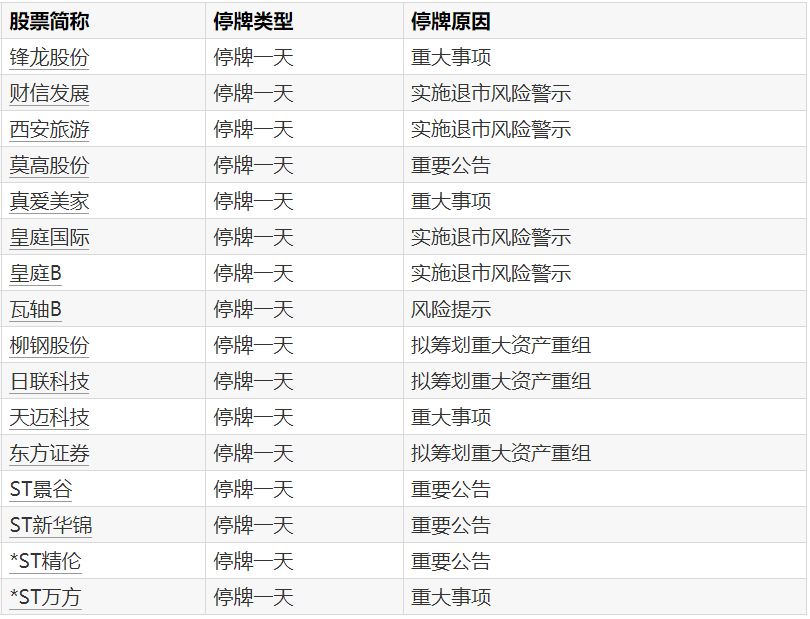 A股停牌提示:8股今日停牌