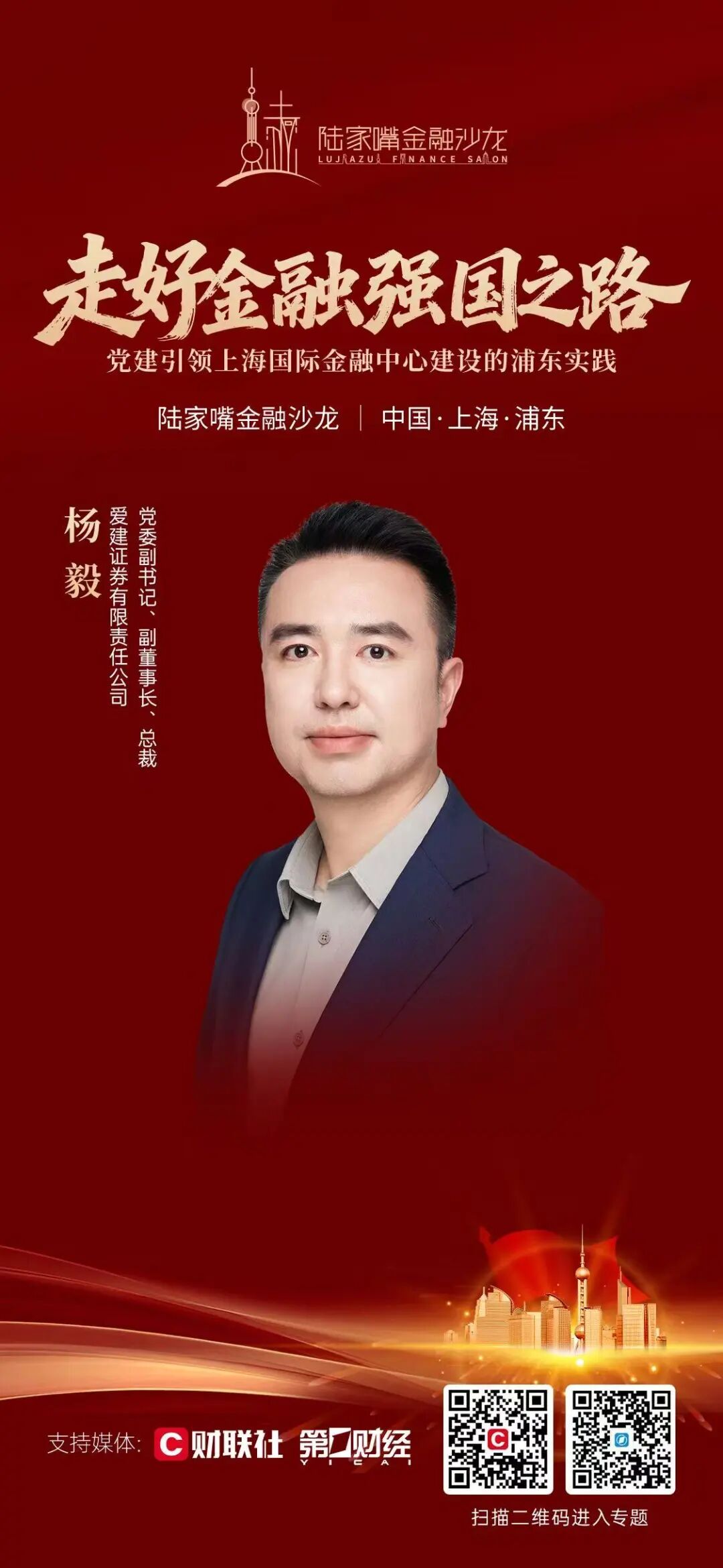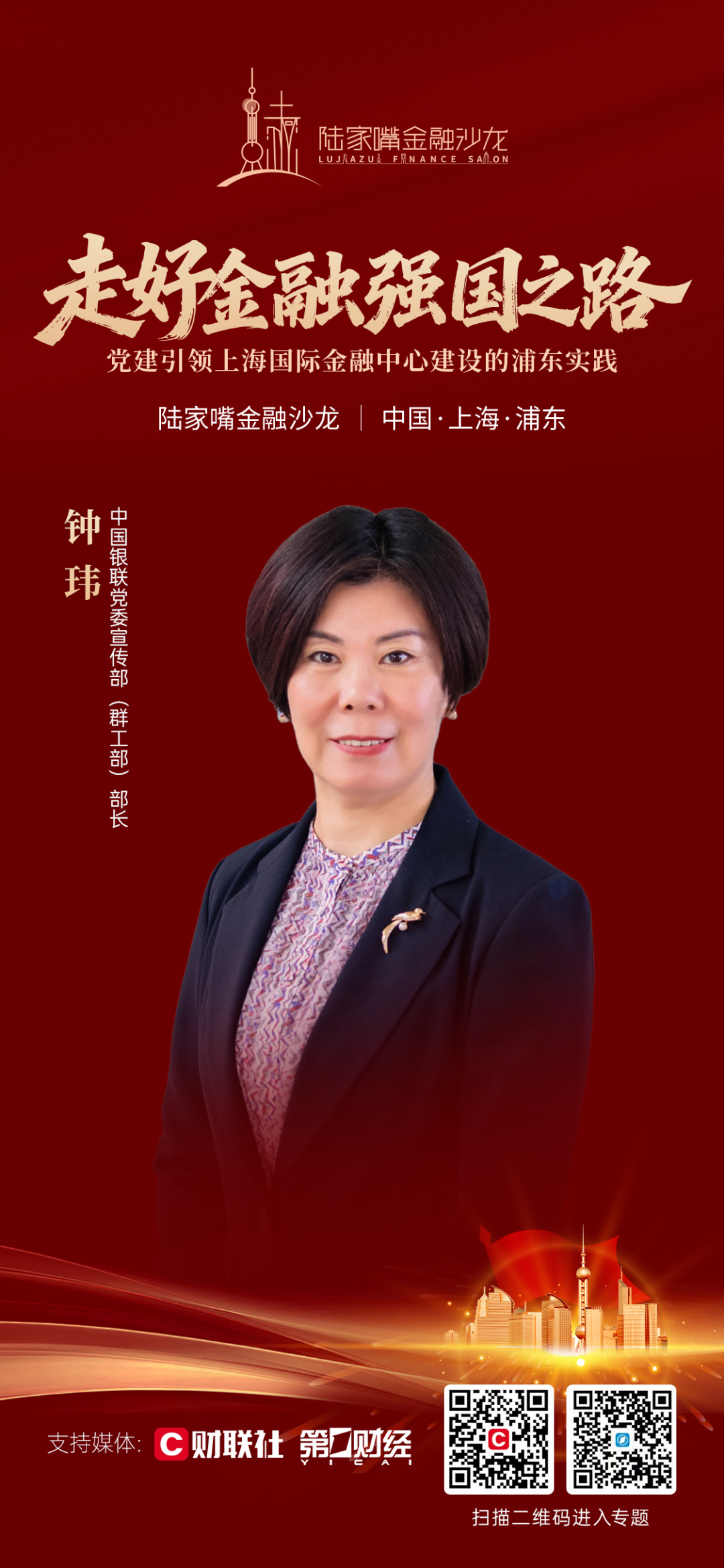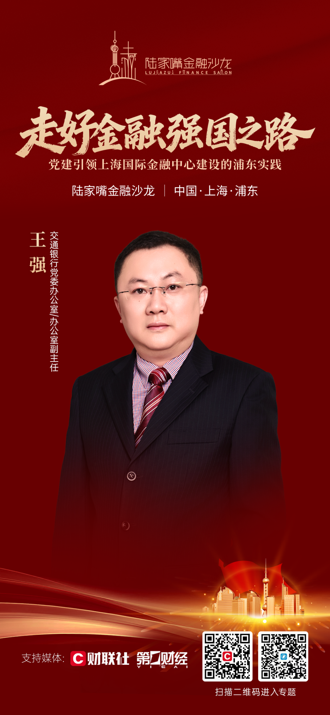 在此背景下,陆家嘴金融沙龙2026年第10期将于4月25日举行。围绕“走好金融强国之路:党建引领上海国际金融中心建设的浦东实践”主题,本期沙龙邀请金融基础设施、银行、证券、保险等行业领域代表,紧扣金融工作的政治性与人民性,深入交流“将党建引领的政治优势转化为浦东金融发展强劲动能”的实践经验与创新思考,为走好中国特色金融发展之路凝聚共识、贡献智慧。