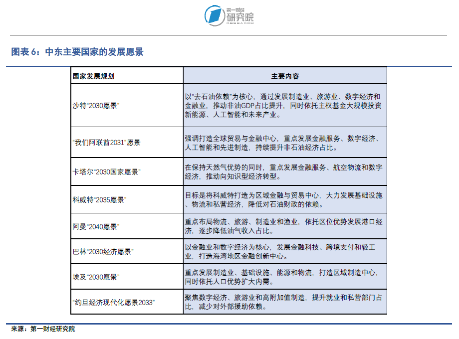 当前,中东主要经济体正以国家级战略规划为核心,通过产业多元化与结构升级,逐步摆脱对油气资源的依赖,构建更加可持续的经济体系。
