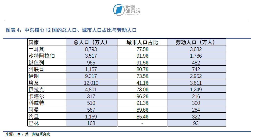 整体来看,中东地区在人口与劳动力结构上形成了“人口大国提供人力、资源富国吸纳劳动力、部分小国发展高端产业”的格局,这种结构对区域产业布局和跨国投资具有重要影响。
