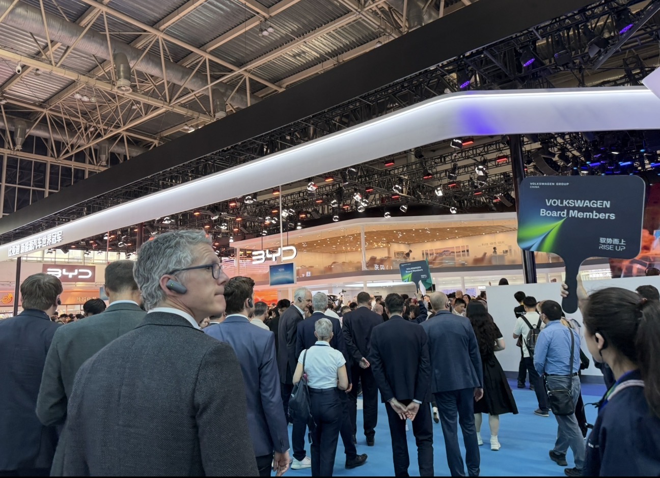 4月24日,北京车展举办首日,第一财经记者在现场注意到,德国大众汽车董事会成员组团观摩了比亚迪展台、梅赛德斯奔驰董事会主席康林松(Ola Källenius)也被曝出现在比亚迪和华为展台。