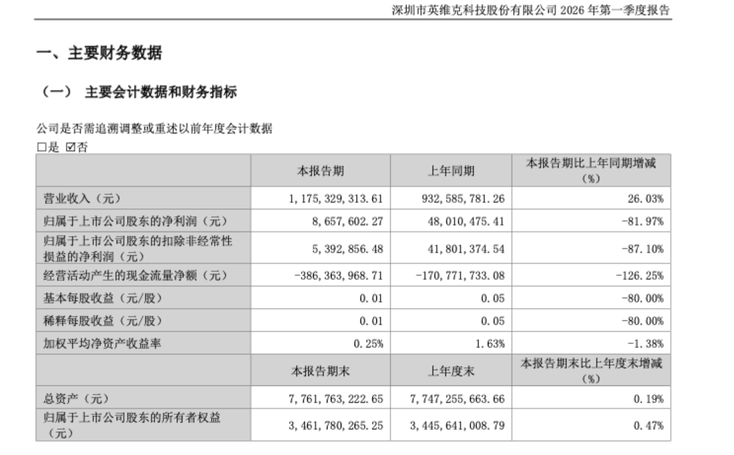 英维克的业绩遇冷引发了市场的担忧。2026年一季度,英维克营收同比增长26.03%,但归母净利润大幅下滑81.97%,远不及市场预期。增收不增利且海外业务增长相对迟缓的情况下,英维克的“英伟达供应商”光环受到市场质疑,液冷行业爆发下的企业增长叙事能否兑现也备受市场关注。