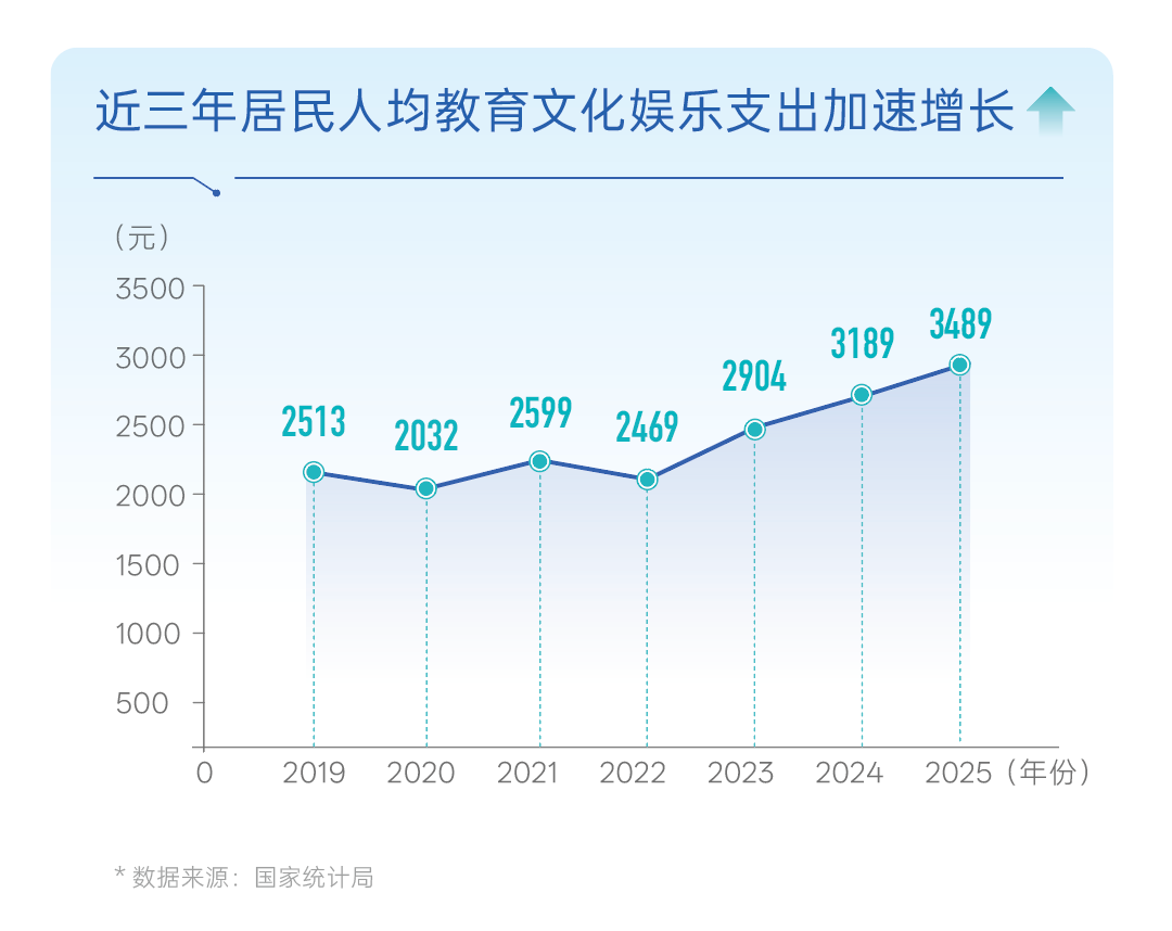 巨量引擎与第一财经商学院联合发布的《2026巨量引擎教育行业营销白皮书》(下称白皮书)显示,教育始终是家庭消费结构中最具韧性的支出之一。近几年,居民人均教育文化娱乐支出持续上行,并自2023年起明显提速。