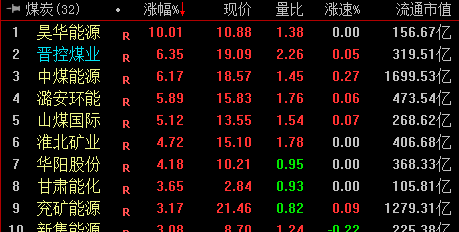 具体来看,煤炭板块震荡走高,昊华能源4天2板,中煤能源、山煤国际等涨超5%。